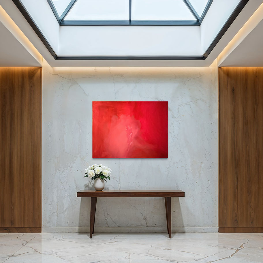 Soft gradients of red unveil a serene yet vibrant abstract composition, capturing both tranquility and dynamism.